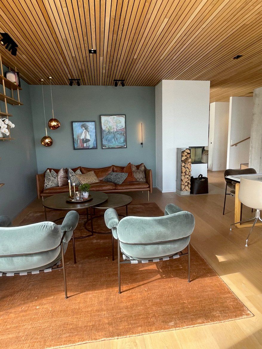 Interiør: Planløsning, produkter, møbler, materialvalg på alle overflater, farger og belysning.